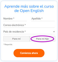 - Déjanos tu información de contacto y la edad de tu hijo en Open English Junior o en el formulario.