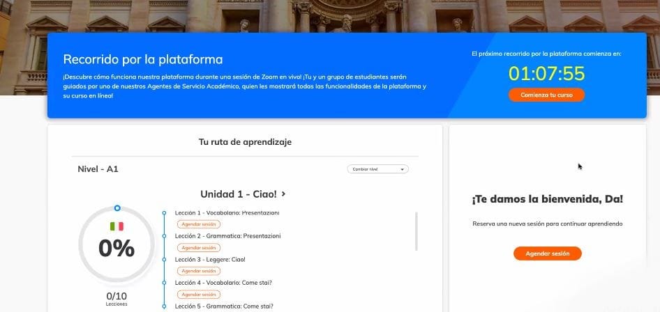 Con tu plan podrás acceder a la plataforma en cualquier momento. Además, serás guiado por nuestros Agentes de Servicio Académico en un recorrido por toda plataforma de Open Mundo; allí podrás revisar tu avance y ruta de aprendizaje, según el nivel y cada unidad trabajada.