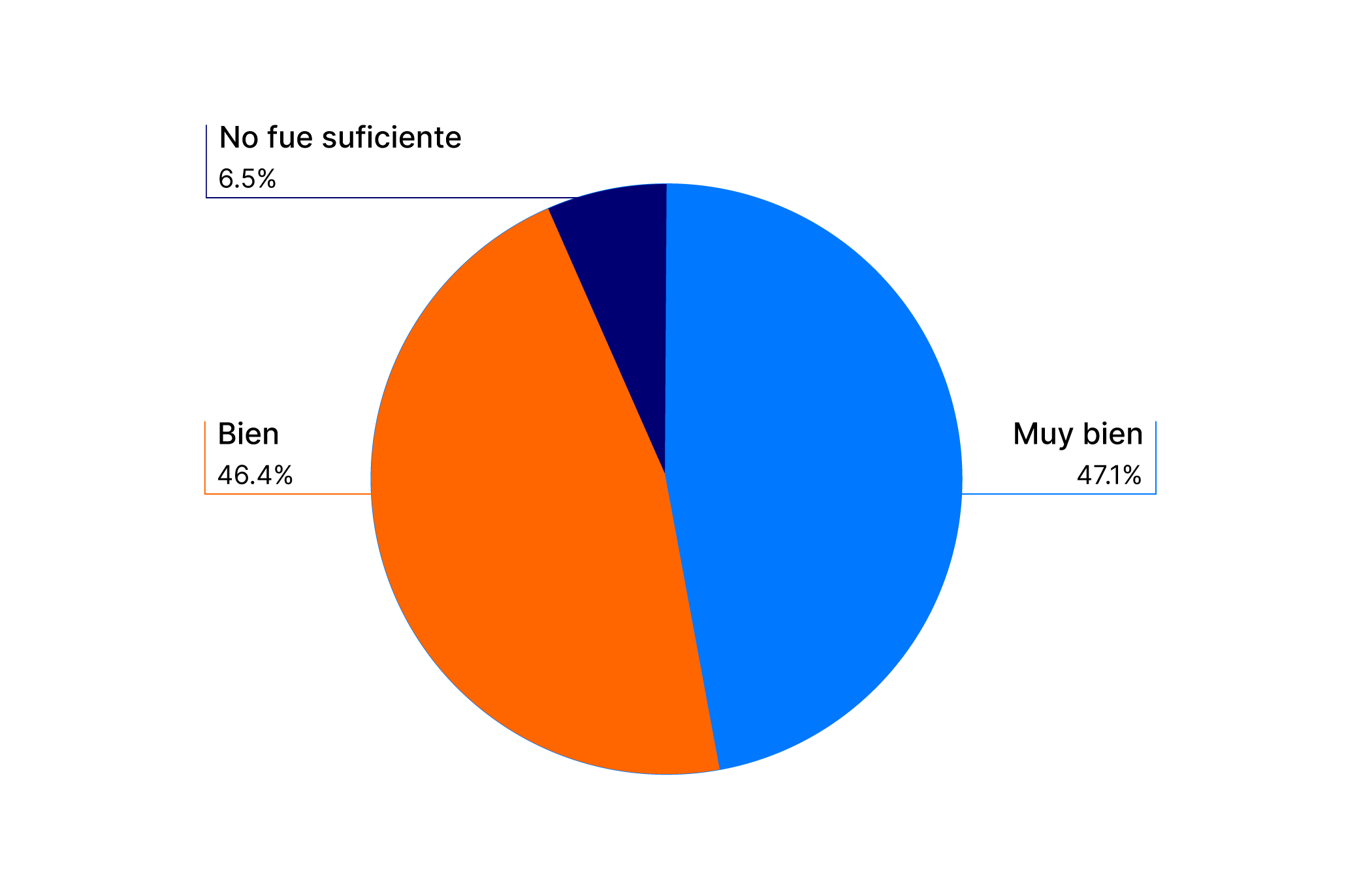 En lo que refiere a la preparación con nuestro método, un 47.10% manifestó que lo hizo muy bien y un 46.38% calificó su preparación como bien, ¡Lo que suma más de un 93% de aprobación!