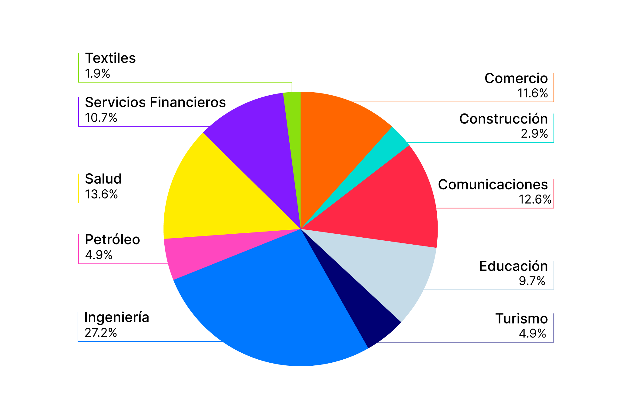 Por último, consultamos a los estudiantes a qué se dedicaban. La mayoría de ellos mencionaron que se dedican a las áreas de ingeniería, salud, comunicaciones, comercio y finanzas.