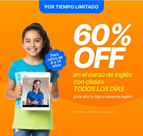 Esta Promoción consiste en la obtención de 60% de descuento en tu curso de inglés de Open English Junior, solo para planes prepagados. El curso solo aplica para personas mayores de 8 años y menores de 14, que sepan leer, escribir y relacionarse con otras personas. Si tienes alguna duda, recuerda que siempre puedes contactar al equipo de soporte de Open Education LLC, en adelante “Open English Junior”, quien dirige, vigila y ofrece esta Oferta, (en adelante la “Promoción”) y con domicilio principal en 2222 Ponce De Leon Blvd. Suite 300 Coral Gables, FL 33134 - Estados Unidos de América, a través del número de contacto que encuentras publicado en nuestra página web http://www.openenglish.com/junior/ (“Página Web”).